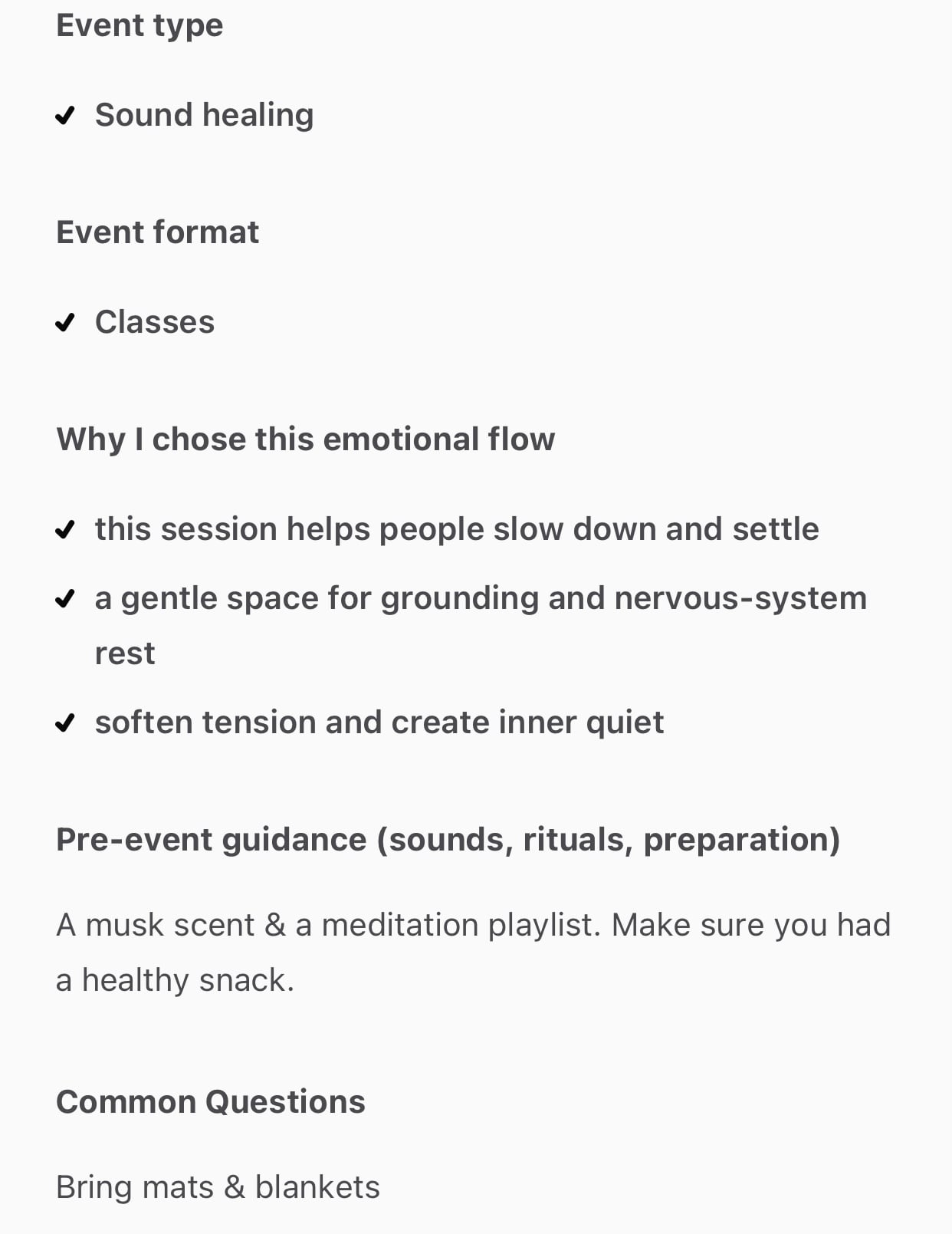 Practitioners define the emotional outcome of their offering + sensory recommendations.